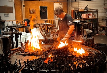 Travailler le métal est un plaisir intense et j'aime partager les connaissances que j'ai pu acquérir au fil des années. J'ai eu la chance de croiser le chemin de maitres du feu qui ont su me transmettre leur passion.